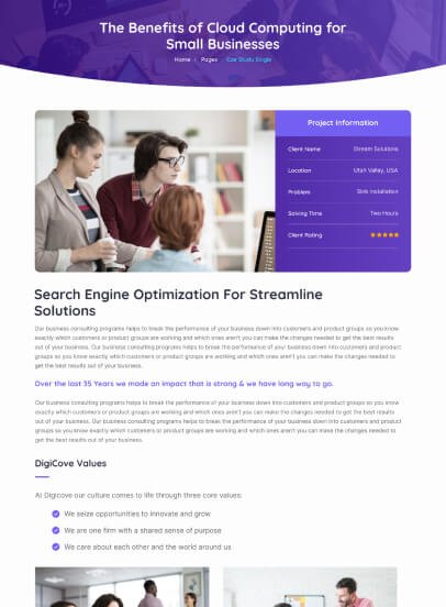 With the Digicove, you can easily create your own complete website. The inner pages have been optimally designed and arranged so that you can quickly and easily adjust your website to your needs.